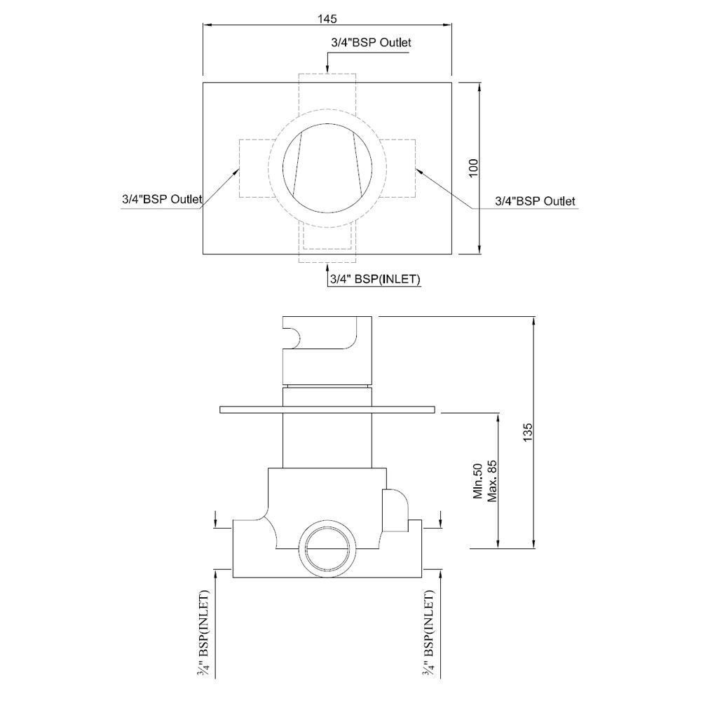 4-Way Diverter (Consisting Of Concealed Body & Wall Flange) for Multiple Shower Working with One Shut-off Position & 3-Outlets (Recommended for Use with Item ARI-39679)