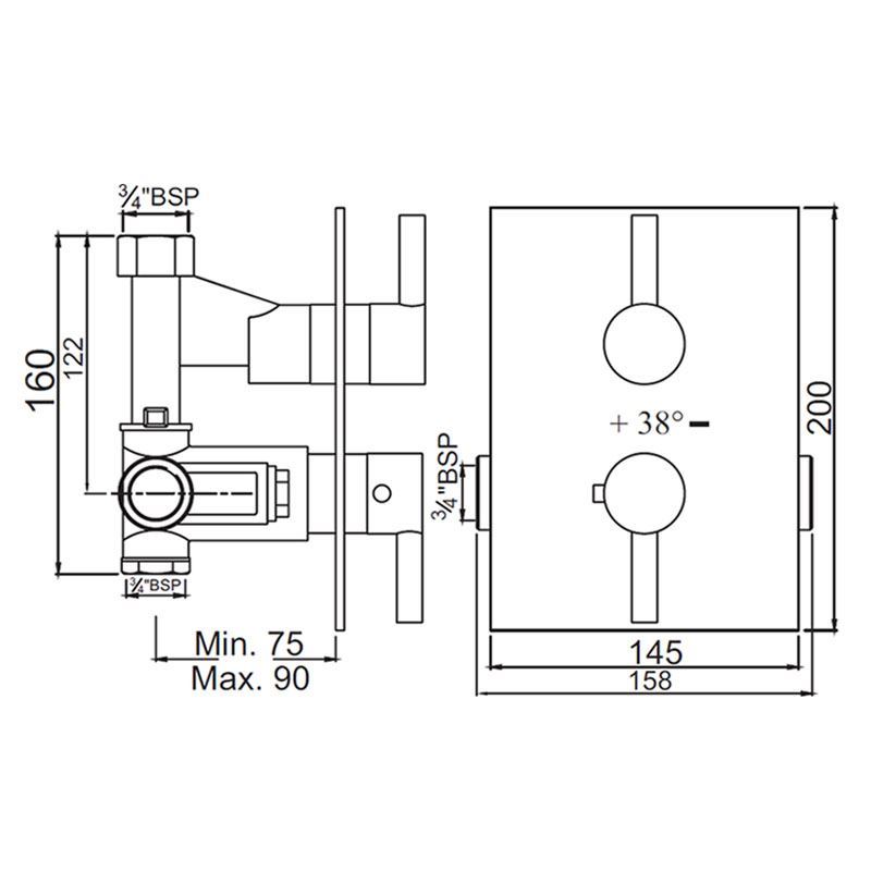 Concealed Shower Mixer with Thermostatic Control Cartridge