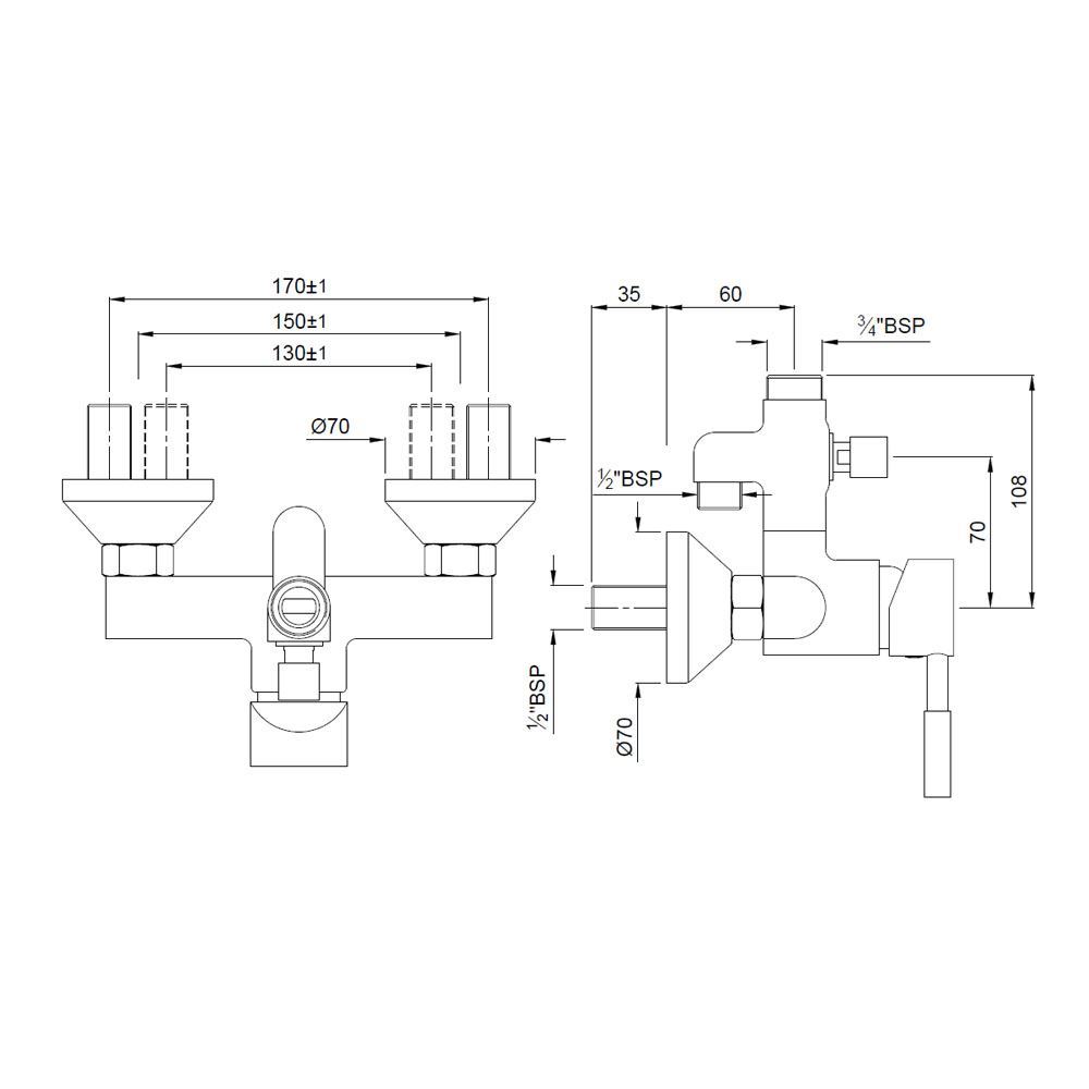 Single Lever Exposed Shower Mixer With Provision For Connection to Exposed Shower Pipe (SHA-1213) & Hand Shower With Connecting Legs & Wall Flanges