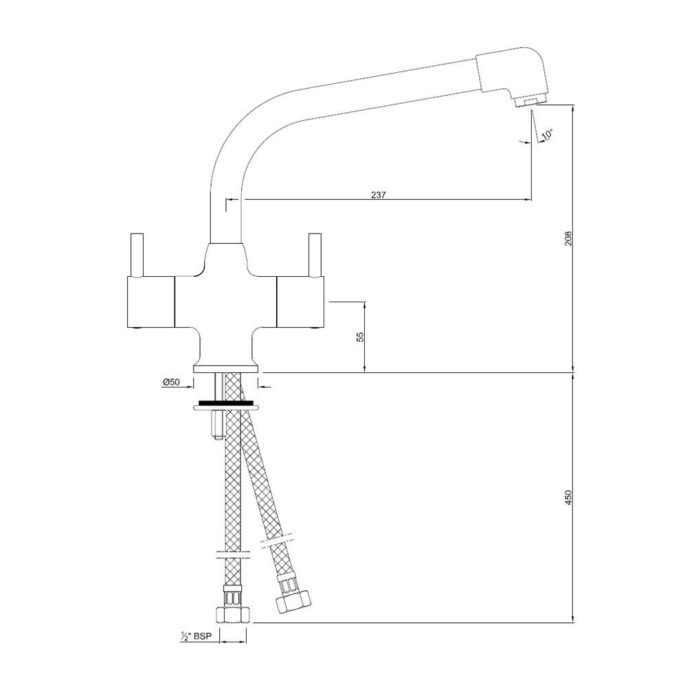 Sink Mixer, 1-Hole with Swinging Extended Spout (Table Mounted Model) with 450mm Long Braided Hoses