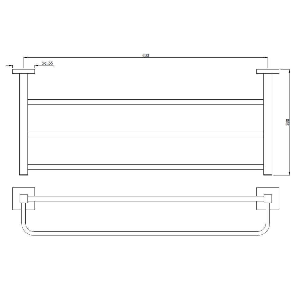 Towel Rack 600mm long with Lower Hangers, Stainless Steel