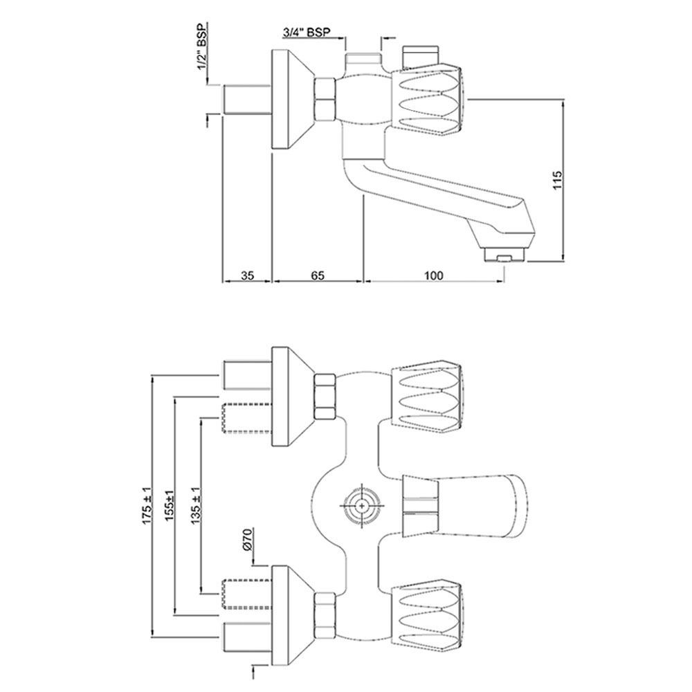 Wall Mixer with Telephone Shower Arrangement ,Connecting Legs & Wall Flanges but without Crutch & Telephone Shower