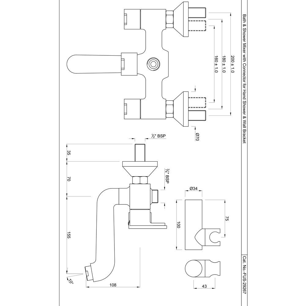 Wall Mixer with Hand Shower Arrangement with Connecting Legs, Wall Flanges & Wall Bracket for Hand Shower