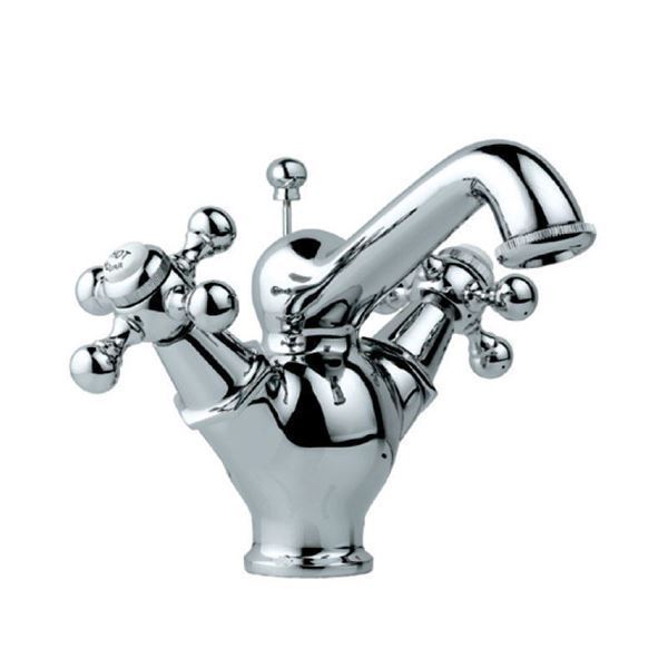 Central Hole Basin Mixer with Regular Spout with Popup Waste System with 450mm Long Braided Hoses